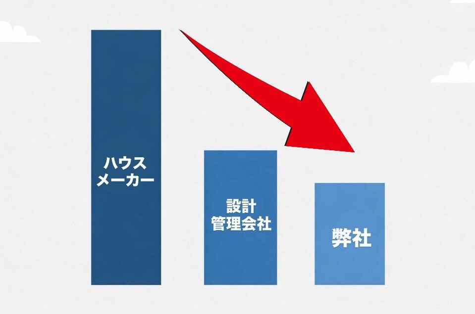 一般的に、ハウスメーカーでは約20%、設計管理会社では約25%ほどのマージンがかかると言われています。